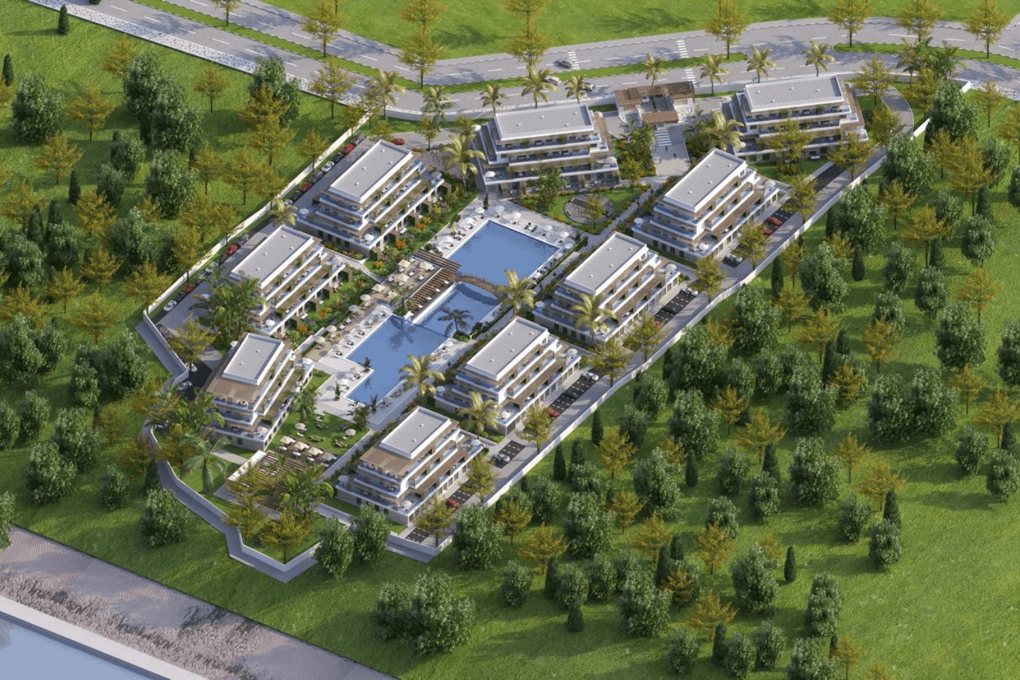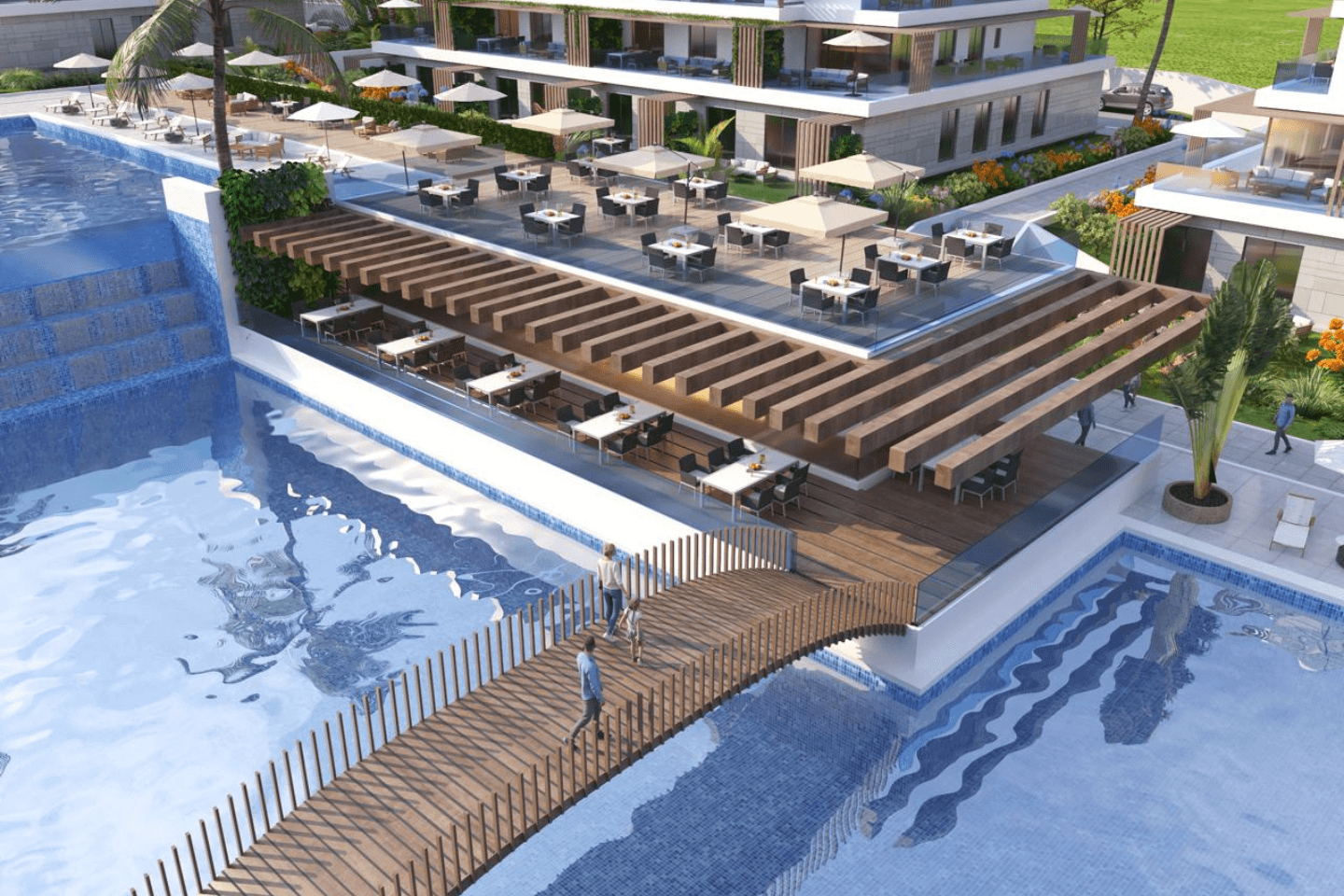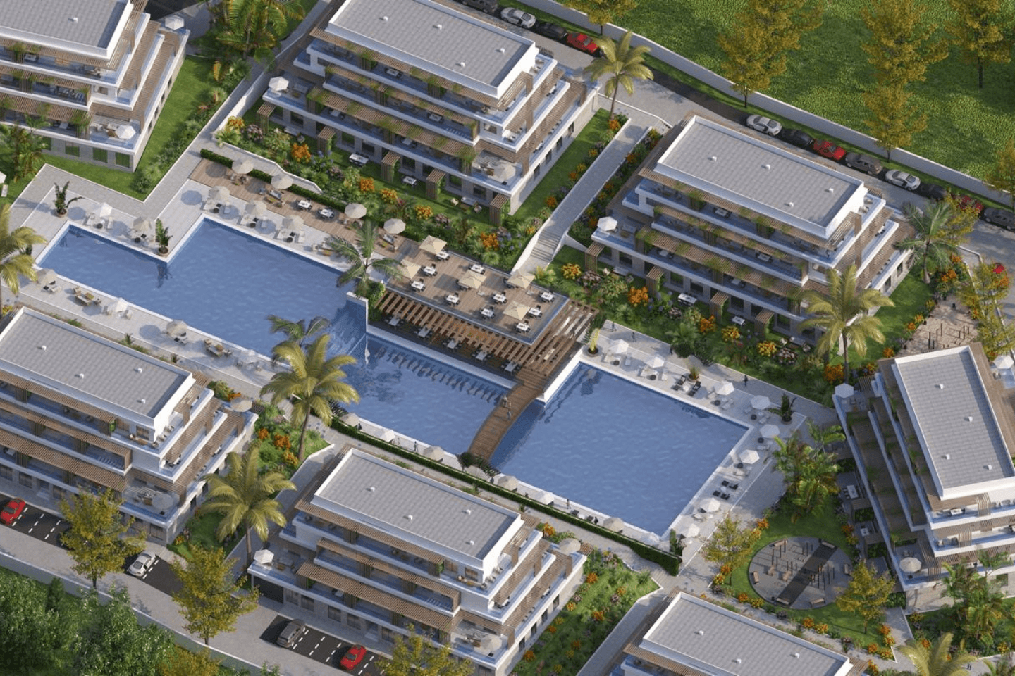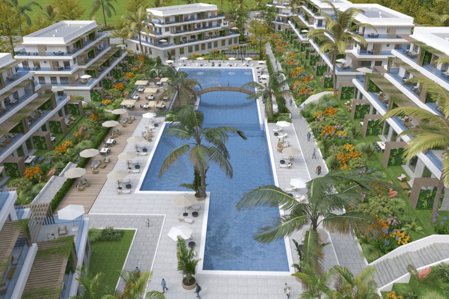 - مسابح وحدائق خاصة بتصميم فاخر.